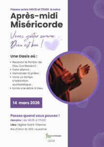 - Chapelet de la divine Miséricorde : du mardi au jeudi, après la messe ; vendredi, après le chemin de croix